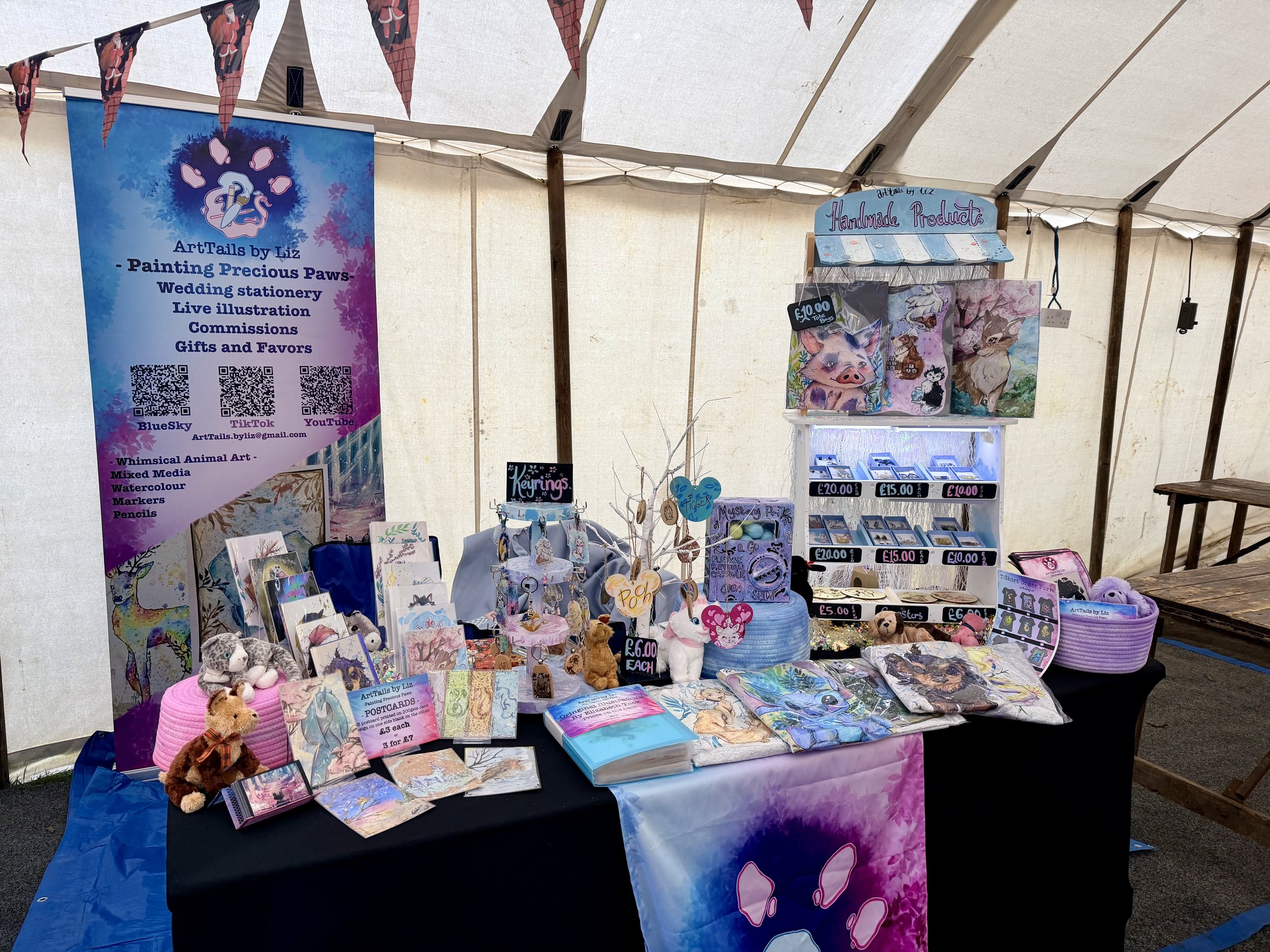 My Business: ArtTails by Liz is a small business where you can find animal art (created by me) printed on a variety of gifts, original artwork and commissions perfect for any animal lover. My artwork is hand-drawn, with each piece having a unique story behind its creation. I am a UK-based artist and illustrator. I specialise in capturing the charm of animals using watercolours and alcohol markers. My creations are full of personality and playful imagination, blending soft, vibrant colours with enchanting details. From woodland creatures to furry friends, each piece reflects a love for storytelling through the beauty of wildlife. Discover a range of handmade products featuring my artwork, designed to bring a touch of nature’s magic into your everyday life. Due to my love of animals, I try to make my products and packaging as eco-friendly as possible. I can also do commissions of your own furry friends. I also do live illustrations for weddings.